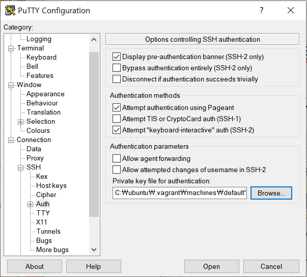 - 보통 .vagrant -> machines -> default -> virtualbox -> {priavte_key} 에 존재합니다.