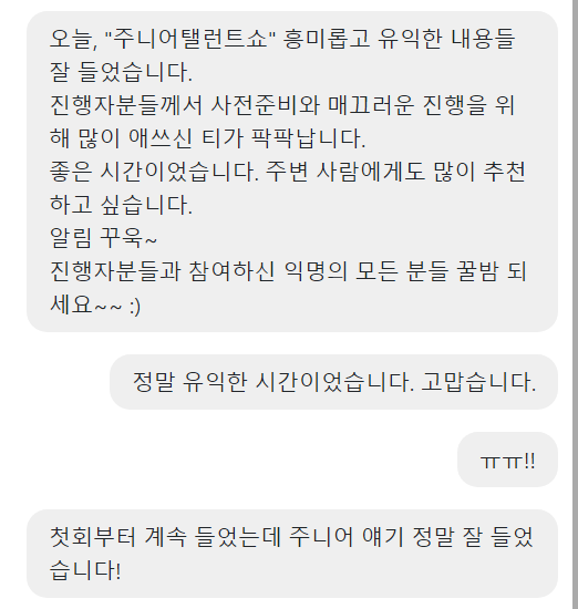 당시 이직에 드릉드릉했던 나였기 때문에 할 얘기가 아주 많았고 트위터 140자로는 만족하지 못해서 토크쇼에 목말라있었던 사람이었음.