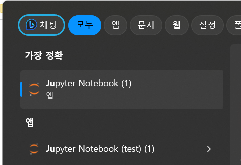 윈도우 화면에서 주피터노트북을 검색하거나, CMD 화면에서 jupyter notebook 명령어로 주피터노트북을 실행한다.