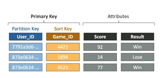 - 기본키(Primary Key) : 파티션 키, 정렬키 (선택)