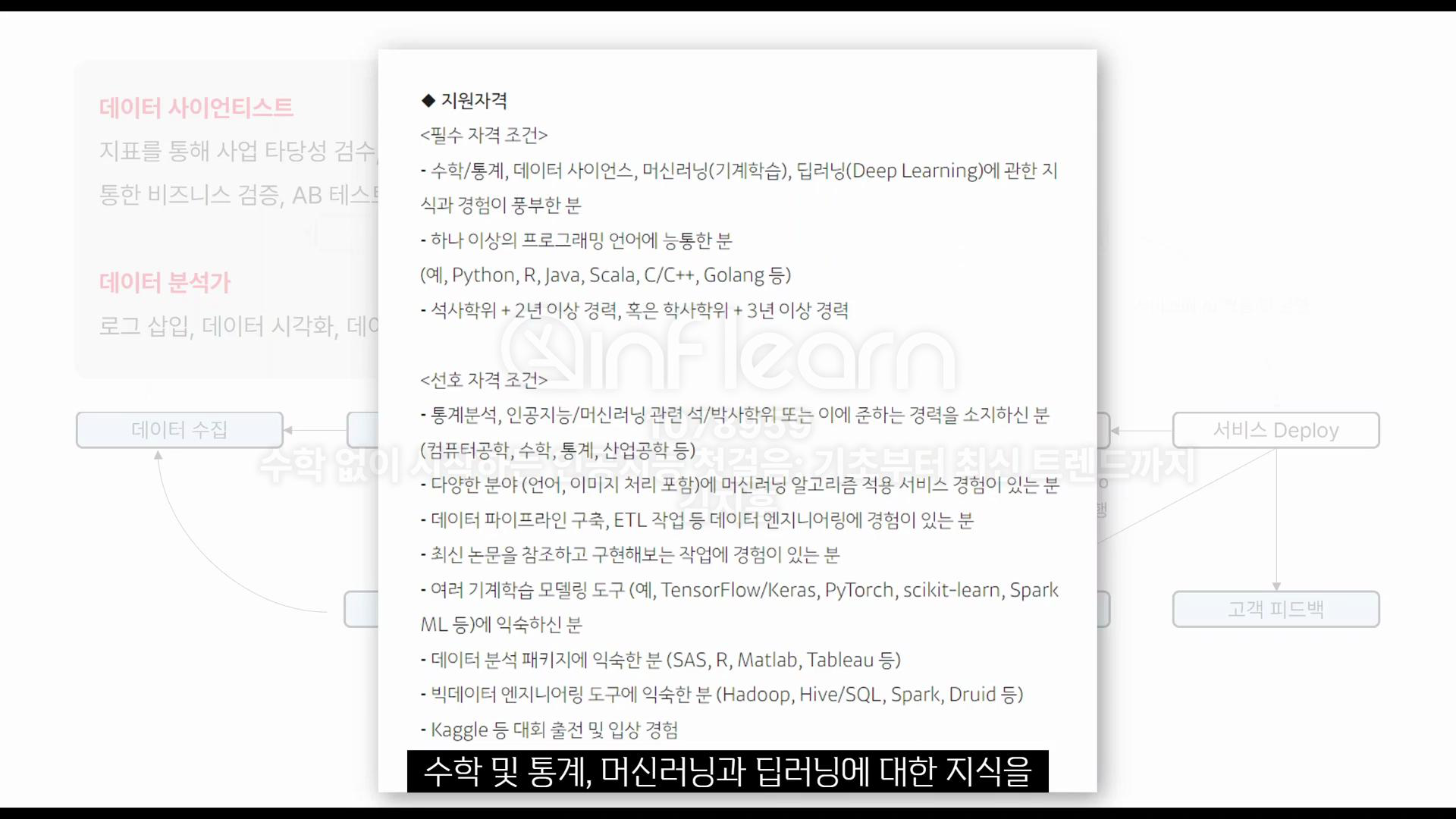 - 통계 지식, 데이터 엔지니어링, 논문을 읽을 수 있는 역량이 필요